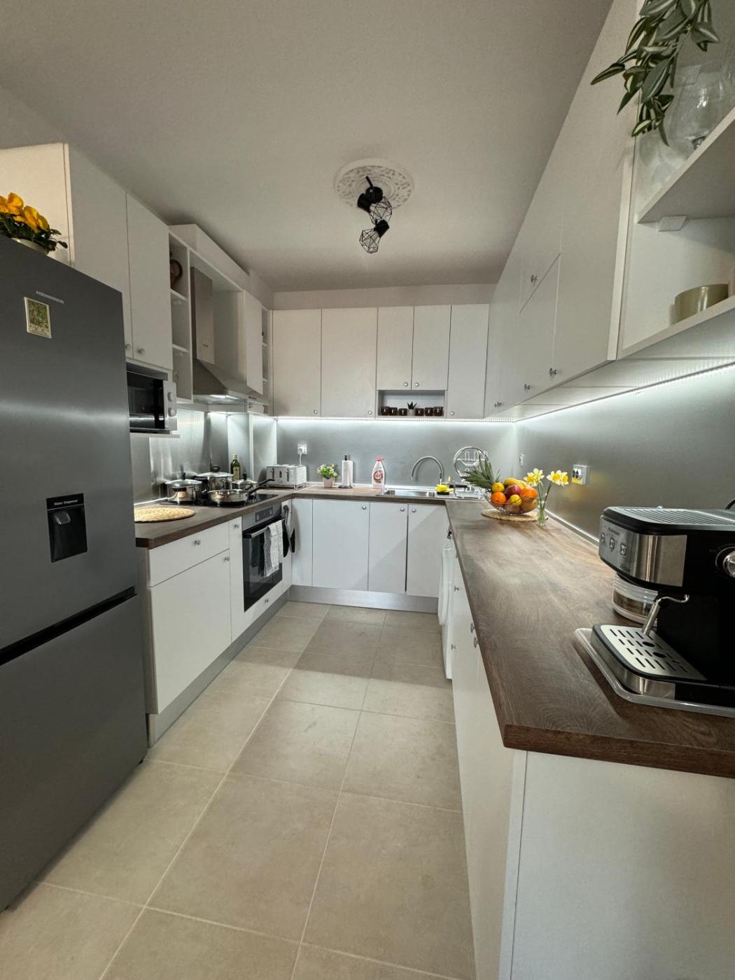 One-Bedroom Apartment. This spacious apartment includes 1 living room, 1 separate bedroom and 1 bathroom with a bath or a shower and free toiletries. Meals can be prepared in the well-fitted kitchen, which is fitted with a stovetop, a refrigerator, an oven and a microwave. The air-conditioned apartment offers a flat-screen TV with streaming services, a washing machine, a private entrance, a tea and coffee maker as well as sea views. The unit has 2 beds.