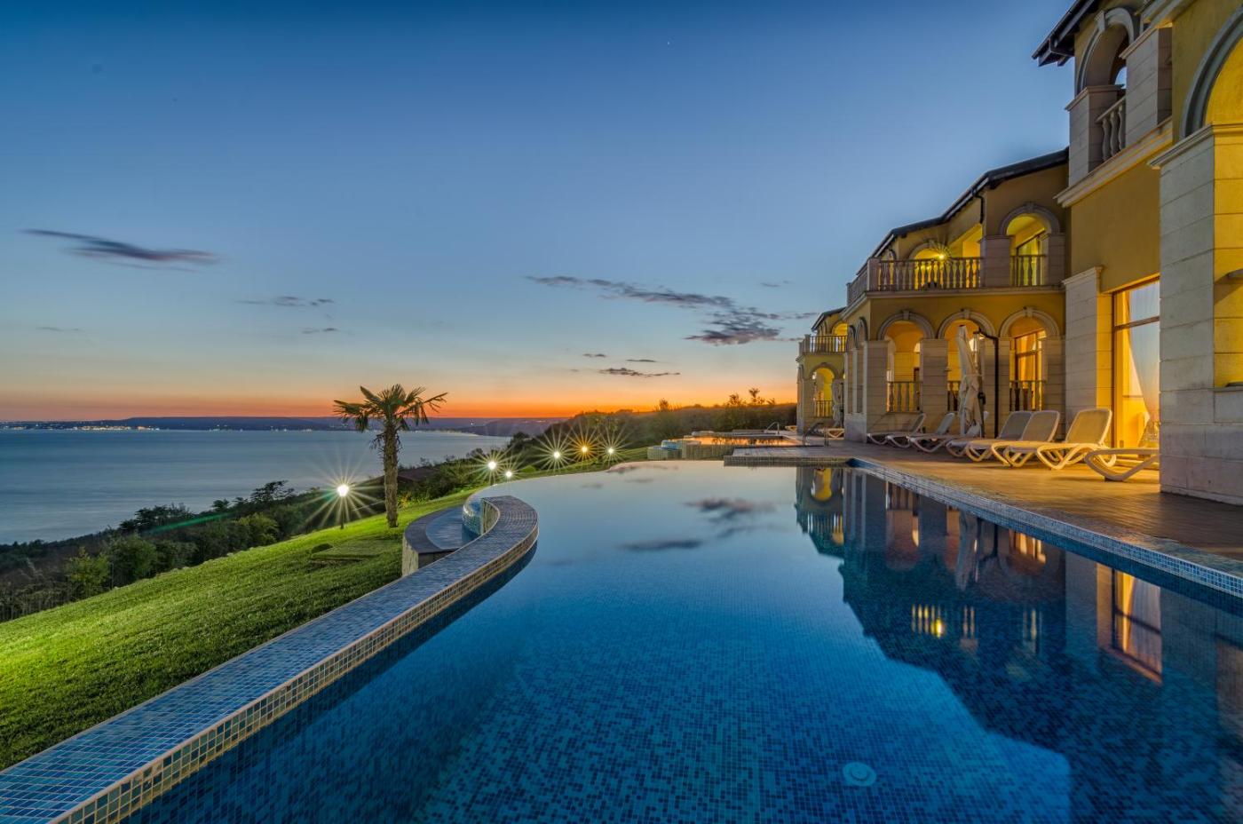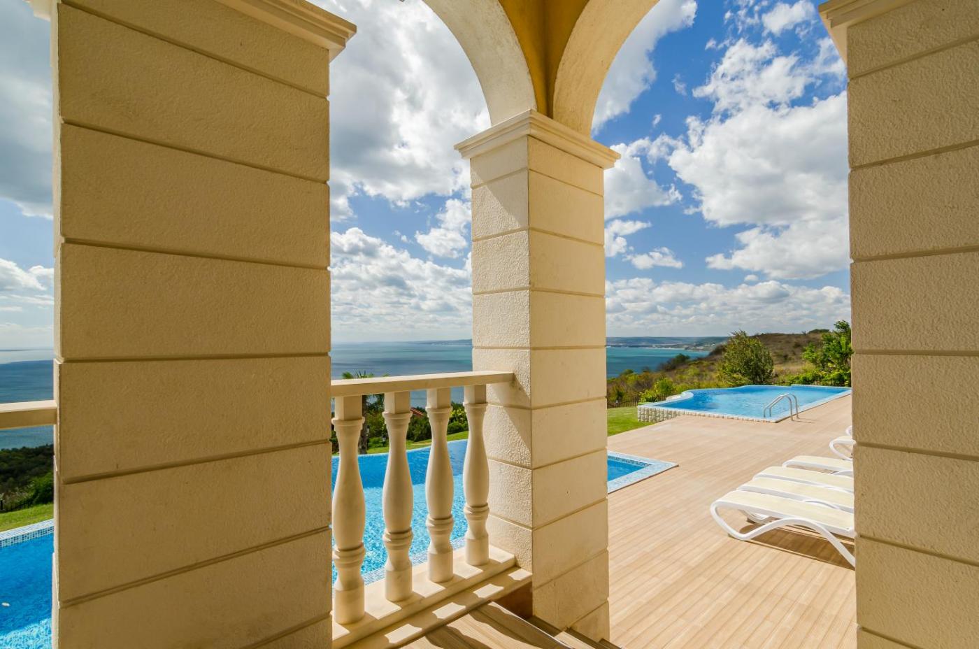 Featuring air-conditioned accommodation with a private pool, sea view and a terrace, VILLAS GOLF is located in Balchik. Free WiFi is provided throughout the property and private parking is available on site. The property is non-smoking and is6.9 km from BlackSeaRama Golf Club.