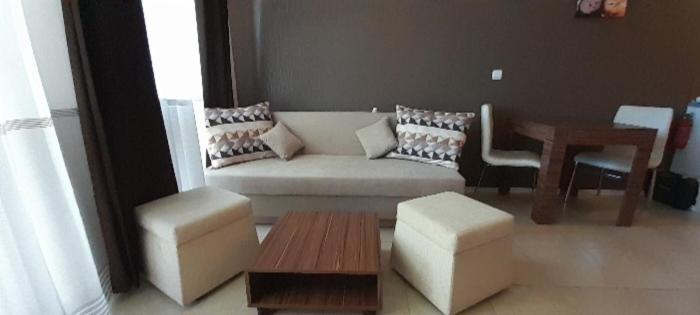 The spacious apartment is fitted with a flat-screen TV. There is a seating area, a dining area and a kitchen complete with a fridge, a stovetop and kitchenware. The property has an outdoor dining area.
