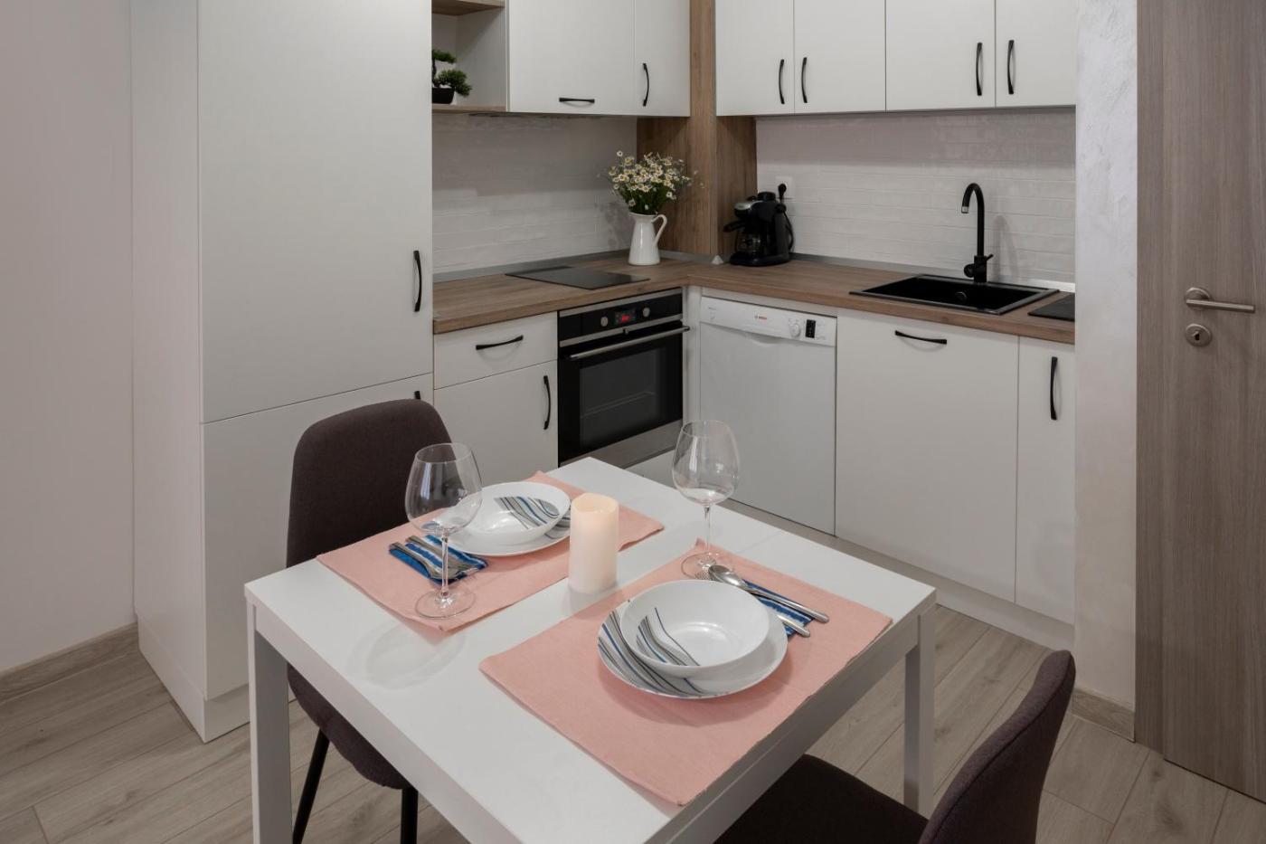 One-Bedroom Apartment. This spacious apartment comes with 1 living room, 1 separate bedroom and 1 bathroom with a walk-in shower and a bath. Meals can be prepared in the kitchen, which features a stovetop, a refrigerator, a dishwasher and kitchenware. The air-conditioned apartment features a flat-screen TV with cable channels, a washing machine, soundproof walls, a tea and coffee maker as well as city views. The unit has 2 beds.
