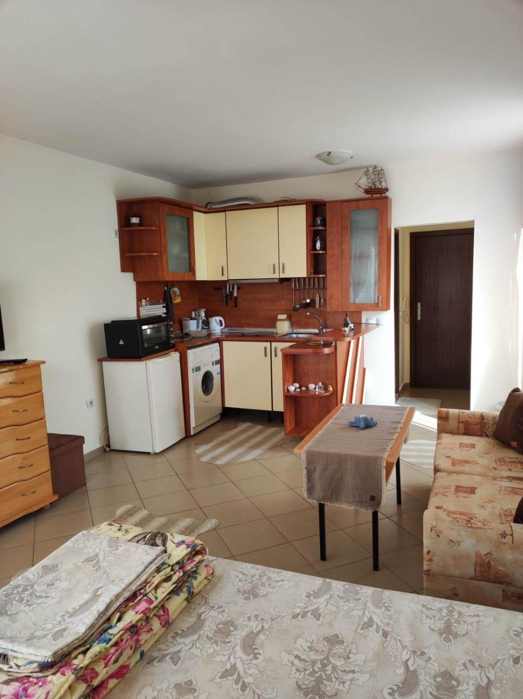 Set within the Sarafovo district in Burgas City, Студио Слънчево утро has air conditioning, a balcony, and garden views. The property features city andcourtyard views, and is 500 metres from Central Beach Sarafovo. Private parking can be arranged at an extra charge.