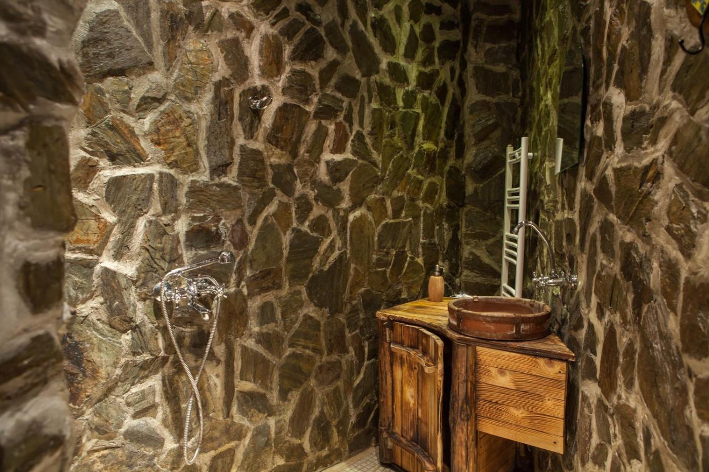 Comfort Double Room. This air-conditioned room is furnished in a unique blend of wood, stone and forged iron. Comes with a TV, a refrigerator and a private bathroom.