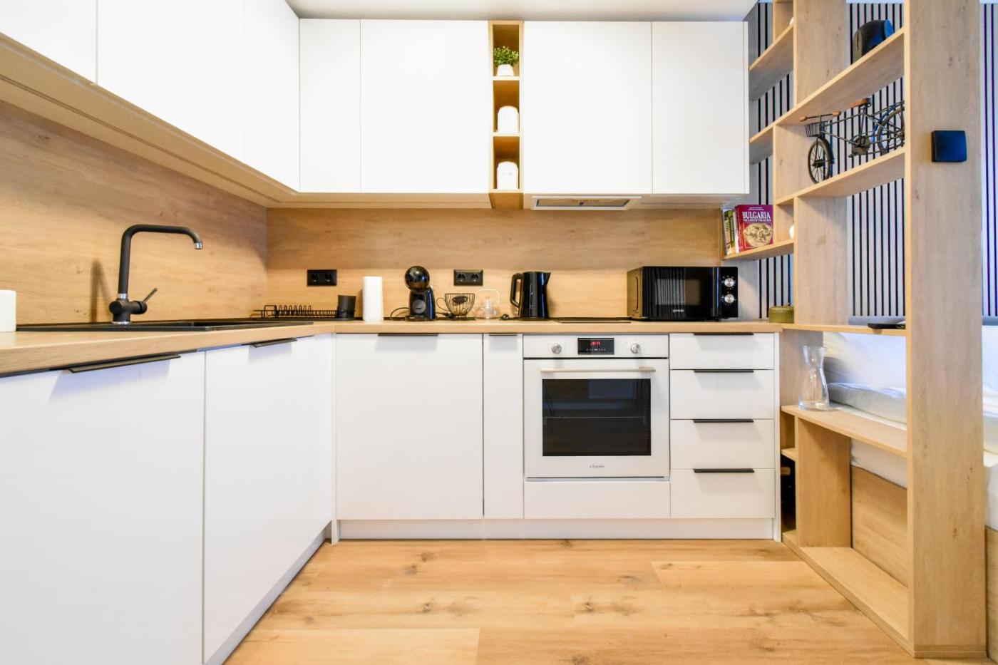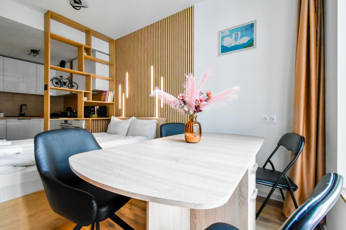 Studio Apartment. This apartment comprises 1 living room, 1 separate bedroom and 1 bathroom with a shower and free toiletries. Meals can be prepared in the well-fitted kitchen, which comes with a stovetop, a refrigerator, a dishwasher and kitchenware. This apartment is air-conditioned and features a seating area with a flat-screen TV, a washing machine, a tea and coffee maker, a dining area, as well as a wardrobe. The unit offers 2 beds.
