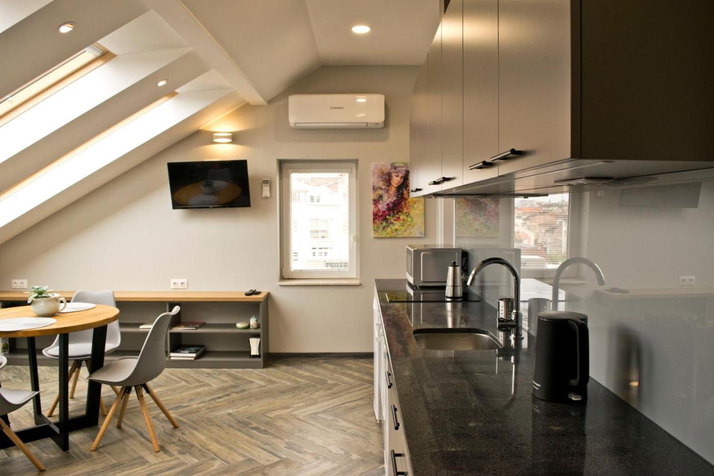 Right in the centre of Sofia, situated within a short distance of Banya Bashi Mosque and Council of Ministers Building, Lofty - 1 bedroom apartment in the heart of Sofia offers free WiFi, air conditioning and household amenities such as a microwave and coffee machine. The property has city views and is 700 metres from Presidency and 1.7 km from Sofia Central Railway Station. The property is non-smoking and is800 metres from Archaeological Museum.