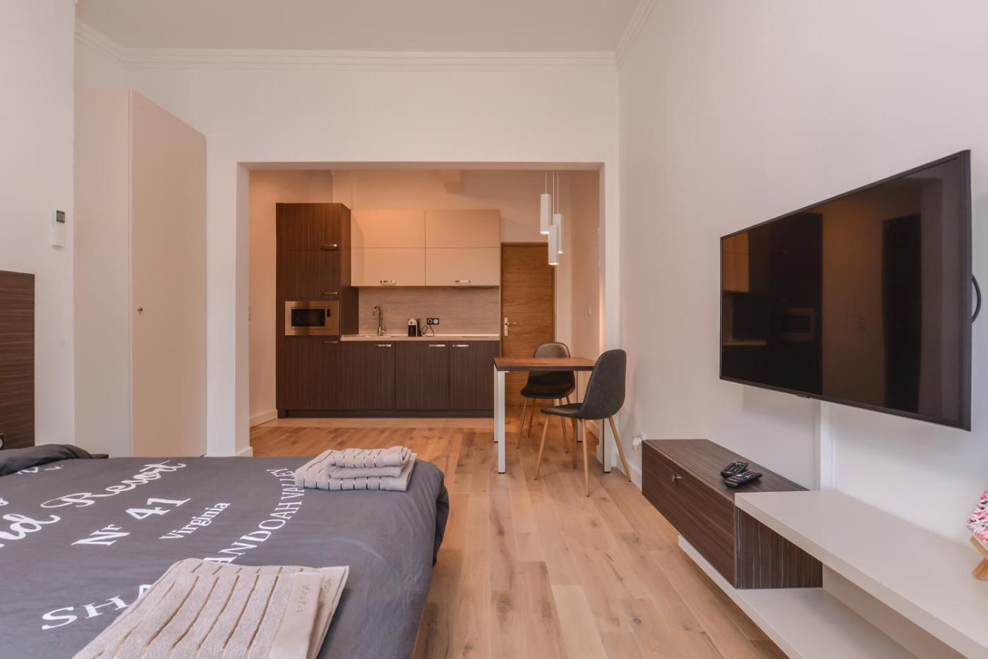 Studio Apartment. Boasting 1 bedroom, this apartment has 1 bathroom with a walk-in shower, a seating area and terraceyou can relax. In the kitchen, guests will find a stovetop, a refrigerator, kitchenware and a microwave. The air-conditioned apartment offers a flat-screen TV with cable channels, a washing machine, a tea and coffee maker, a dining area as well as garden views. The unit offers 1 bed.