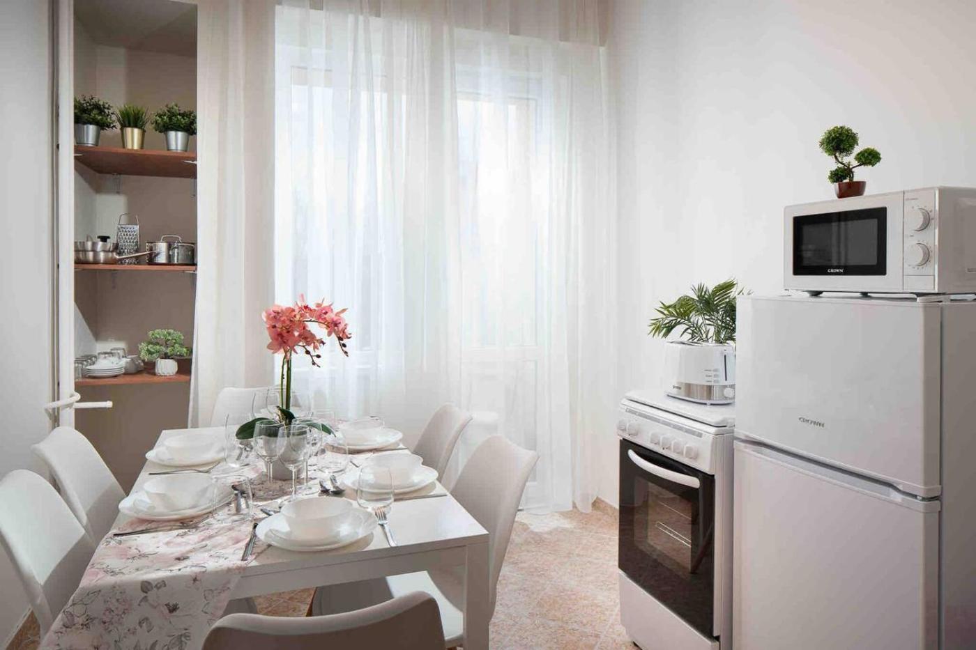 Two-Bedroom Apartment. Boasting a private entrance, this spacious apartment also comes with 1 living room, 2 separate bedrooms and 1 bathroom with a shower. In the kitchen, guests will find a stovetop, a refrigerator, a dishwasher and kitchenware. The apartment features a washing machine, soundproof walls, a tea and coffee maker, a flat-screen TV with streaming services, as well as garden views. The unit has 4 beds.