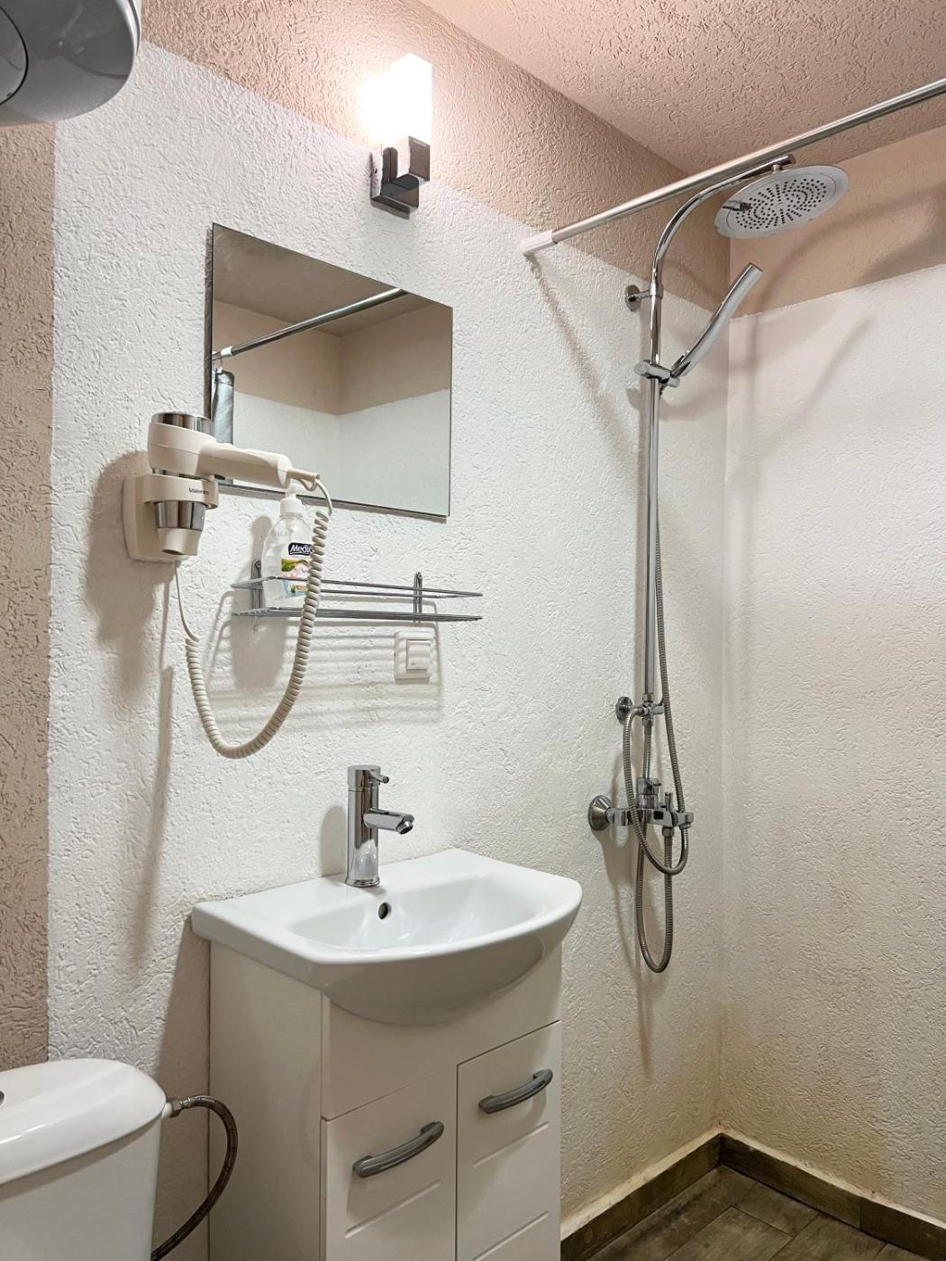Budget Double Room. The double room has a shared bathroom, air conditioning, a private entrance, as well as a seating area with a flat-screen TV. The double rooms kitchenette is available for cooking and storing food. The double room features a wardrobe, a safe deposit box, a carpeted floor, heating and a TV. The unit has 2 beds. ;