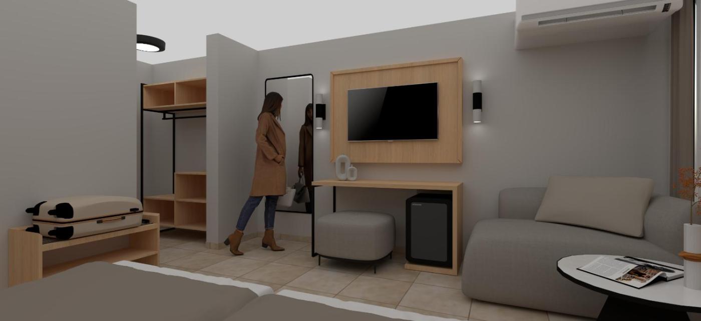The rooms at Hotel LONGOSAcome with air conditioning, a private bathroom with a shower and satellite TV. They also feature a balcony and a sofa.