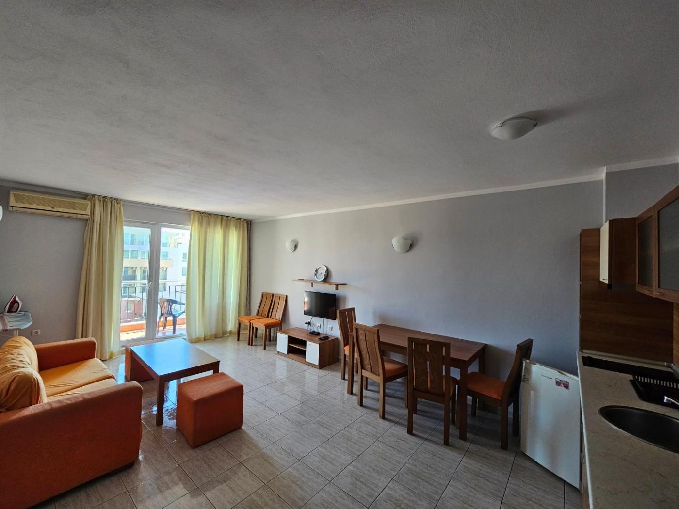 Situated in Sunny Beach, 1 km from Sunny Beach and 3.4 km from Old Nesebar, Тристаен просторен апартамент с две отделни спални offers a garden and air conditioning. The property is4.2 km from Action AquaPark, 25 km from Museum of Aviation and 31 km from Burgas Saltworks. The aparthotel has parking on-site, a hot tub and a 24-hour front desk.