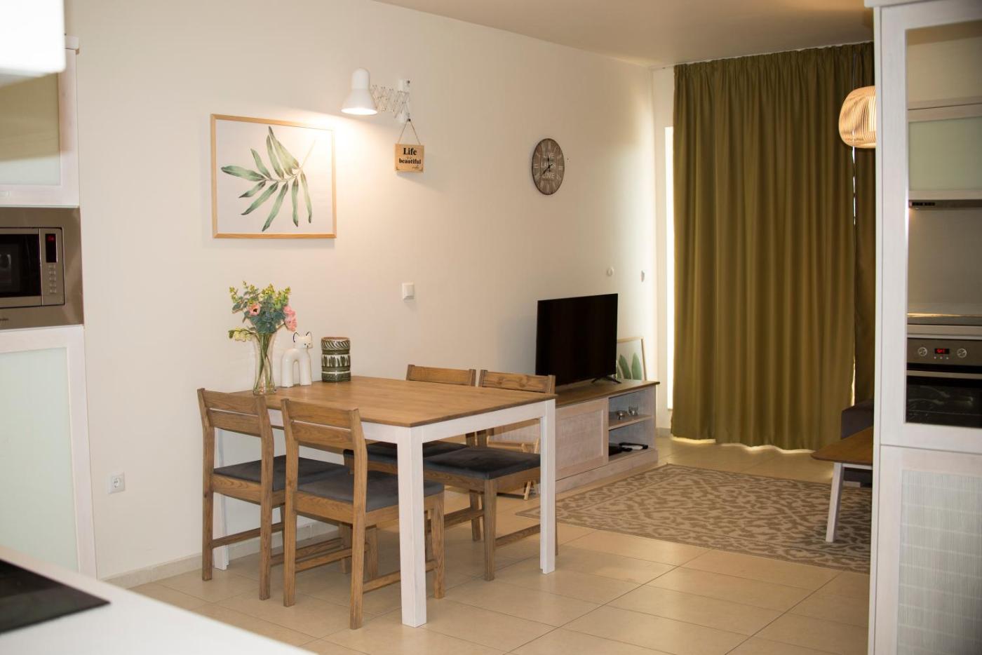 One-Bedroom Apartment. This spacious apartment includes 1 living room, 1 separate bedroom and 1 bathroom with a shower and free toiletries. In the kitchen, guests will find a stovetop, a refrigerator, a dishwasher and kitchenware. This air-conditioned apartment features a dining area, a flat-screen TV with streaming services a washing machine and a terrace. The unit has 2 beds.