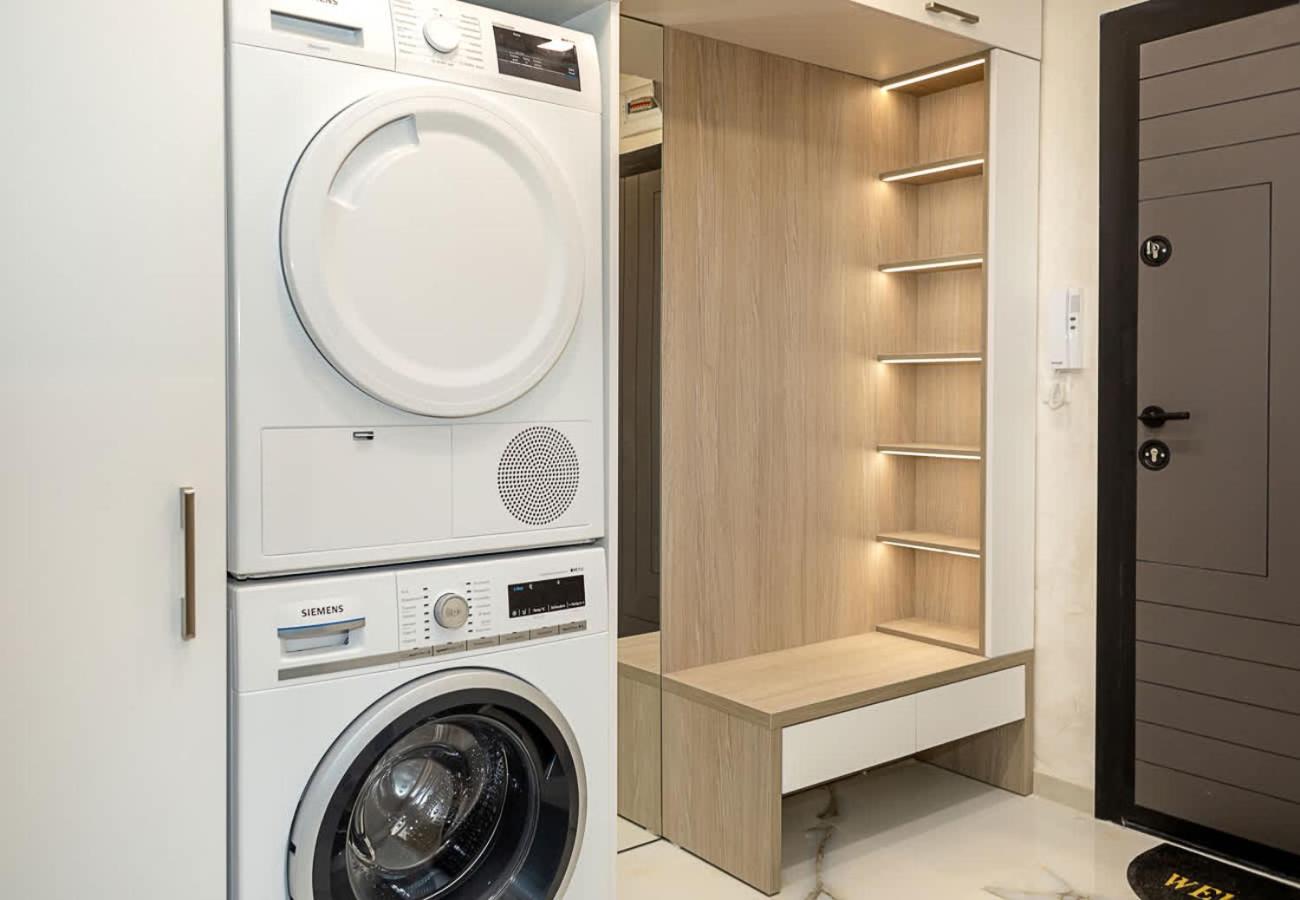Apartment. This apartment comprises 1 living room, 1 separate bedroom and 1 bathroom with a hairdryer and free toiletries. In the well-fitted kitchen, guests will find a stovetop, a refrigerator, a dishwasher and kitchenware. This apartment is air-conditioned and features a TV, a washing machine, a tea and coffee maker and tumble dryer. The unit offers 2 beds.