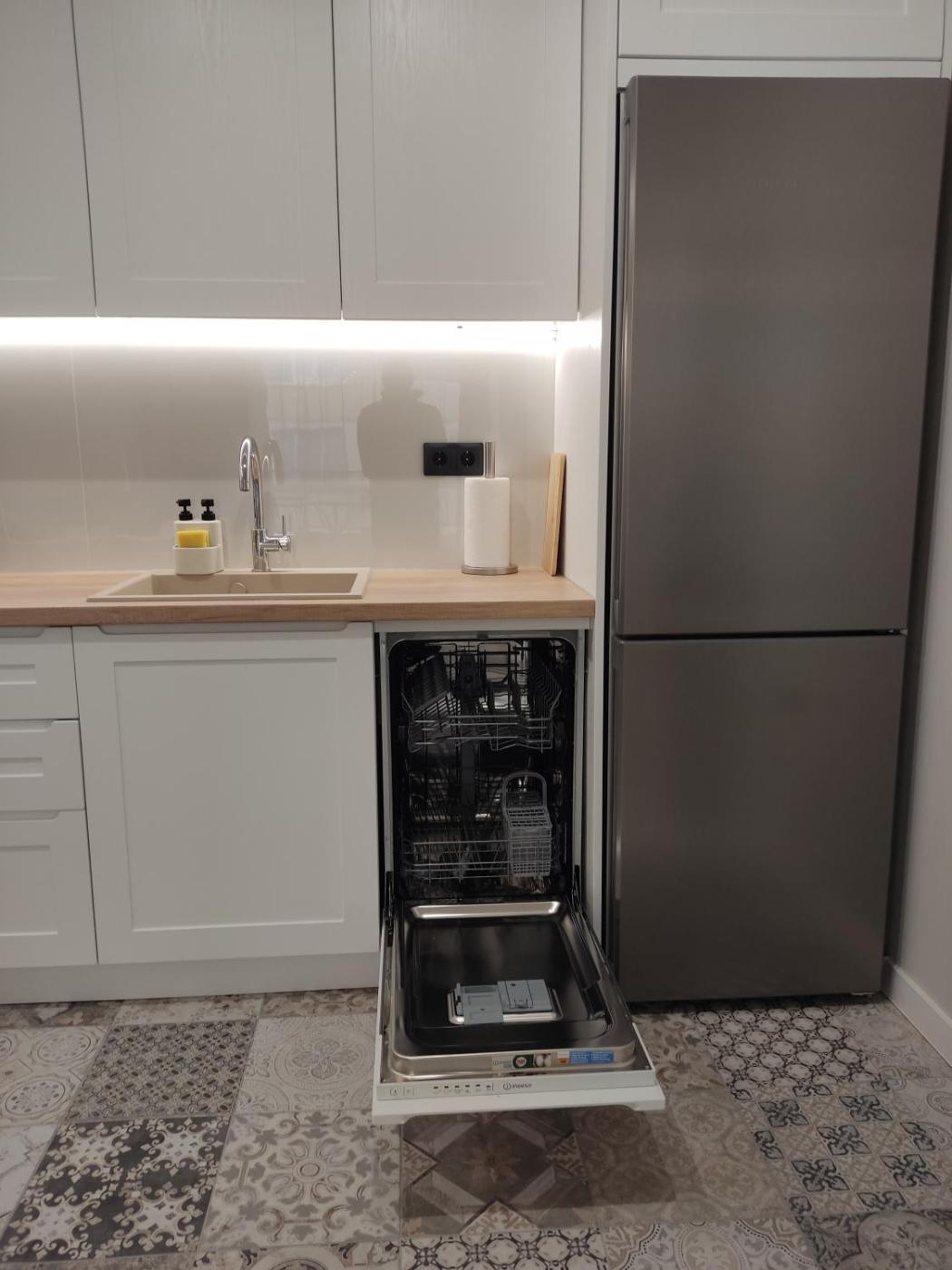 One-Bedroom Apartment. This spacious apartment features 1 living room, 1 separate bedroom and 1 bathroom with a shower and free toiletries. Guests can make meals in the kitchen that has a stovetop, a refrigerator, a dishwasher and kitchenware. This air-conditioned apartment comprises a dining area, a flat-screen TV with cable channels a washing machine and a terrace. The unit has 2 beds.
